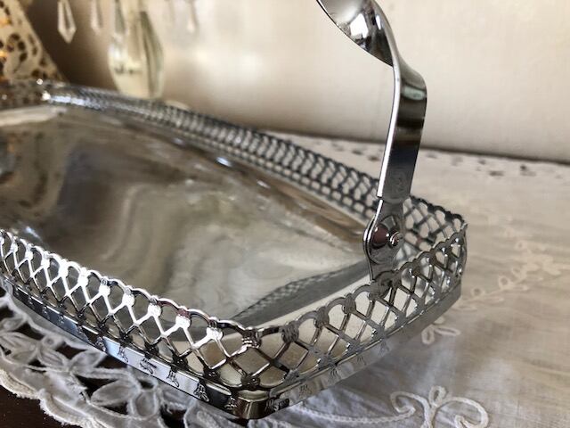 シルバープレートのハンドル付きサンドウィッチバスケットです。