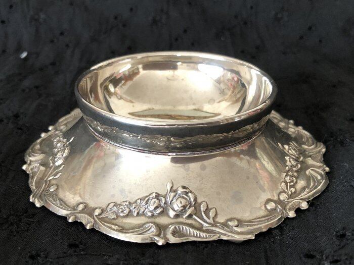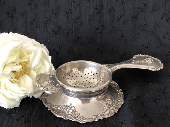 ティーストレイナーはシルバープレートに薔薇の装飾が施してあります。