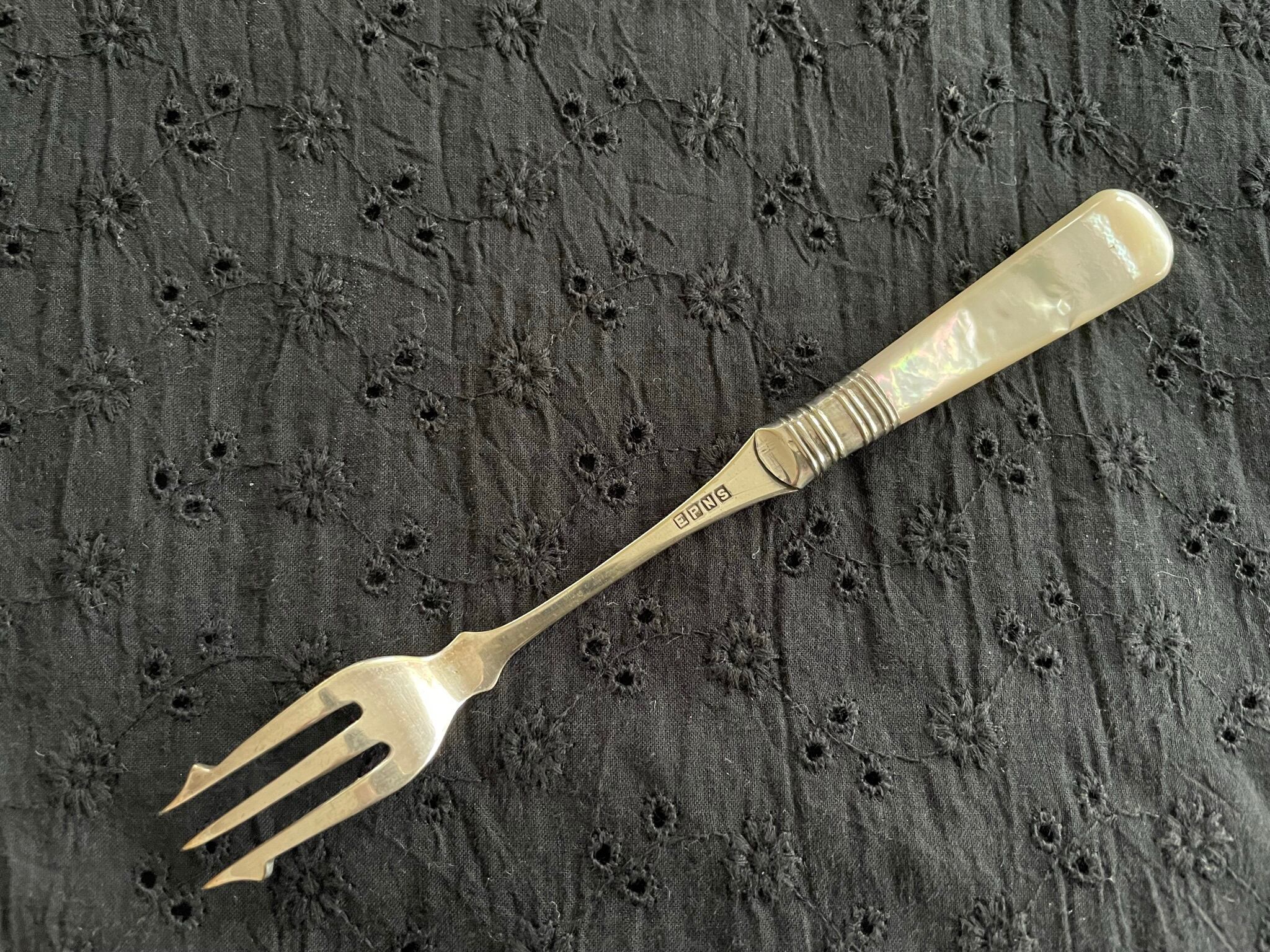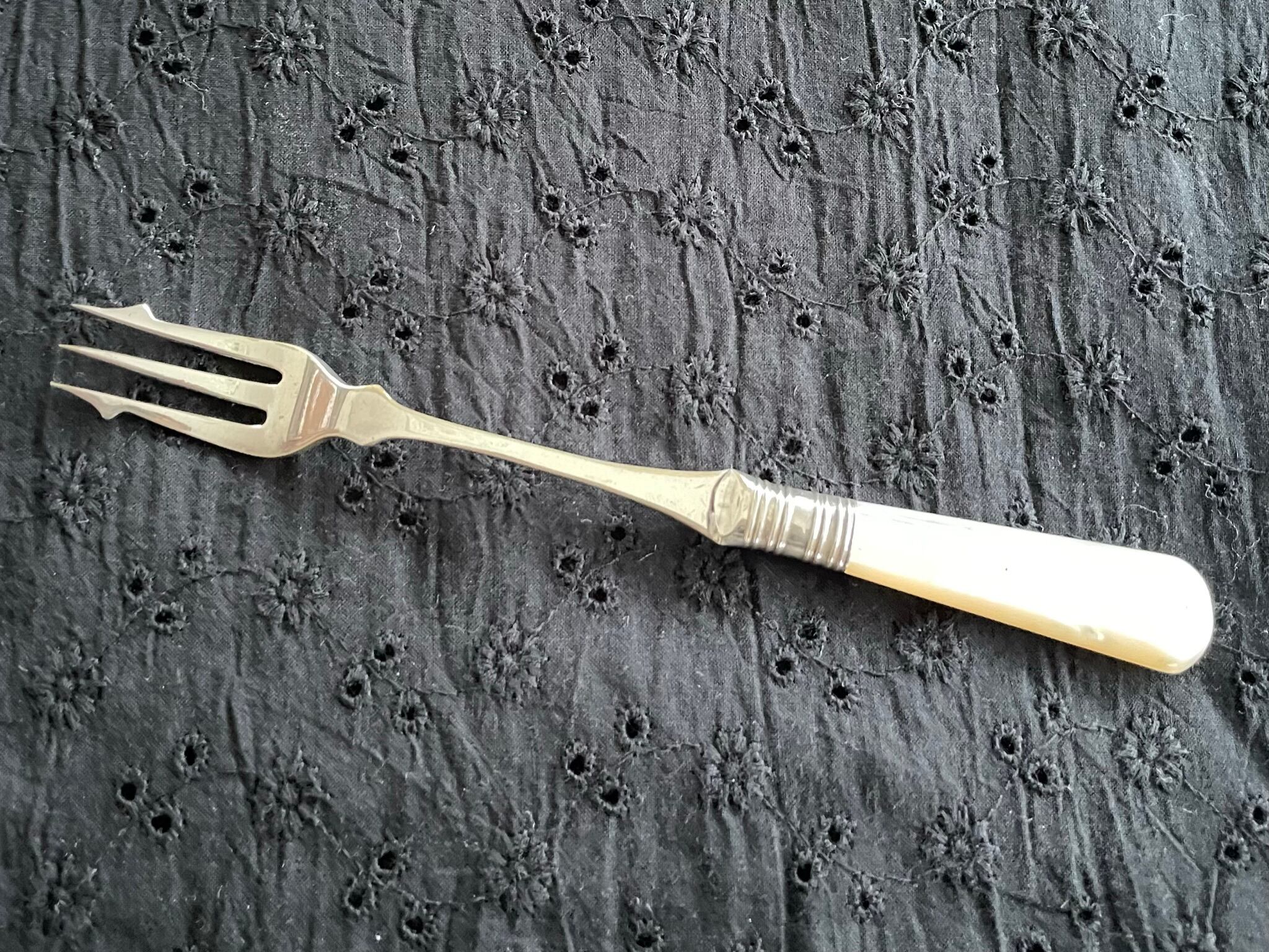 マザーオブパールのピクルスフォークです。