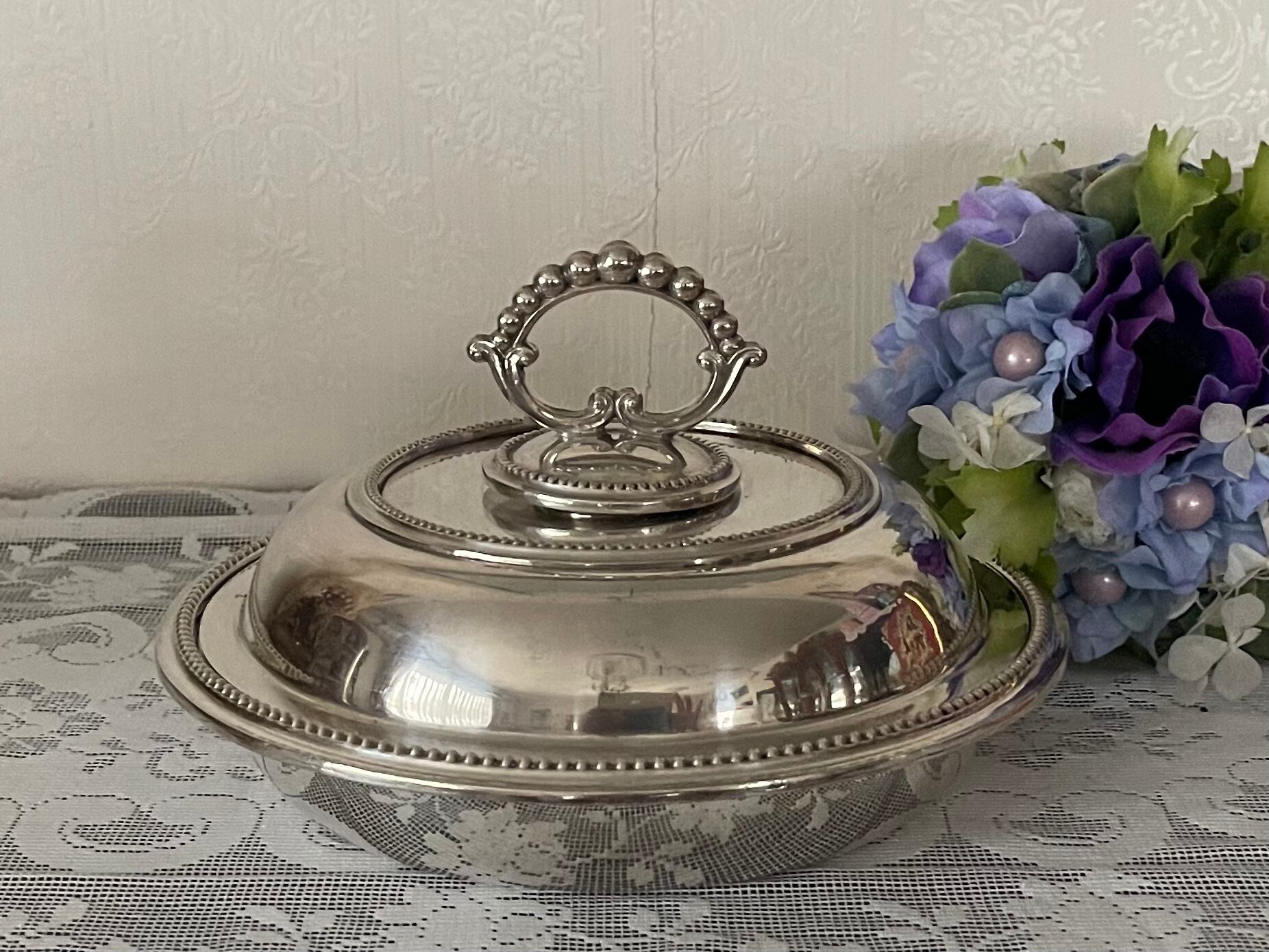 良質のシルバープレートで、装飾も素敵なですのでテーブルをいっそう華やかにしてくれますね。