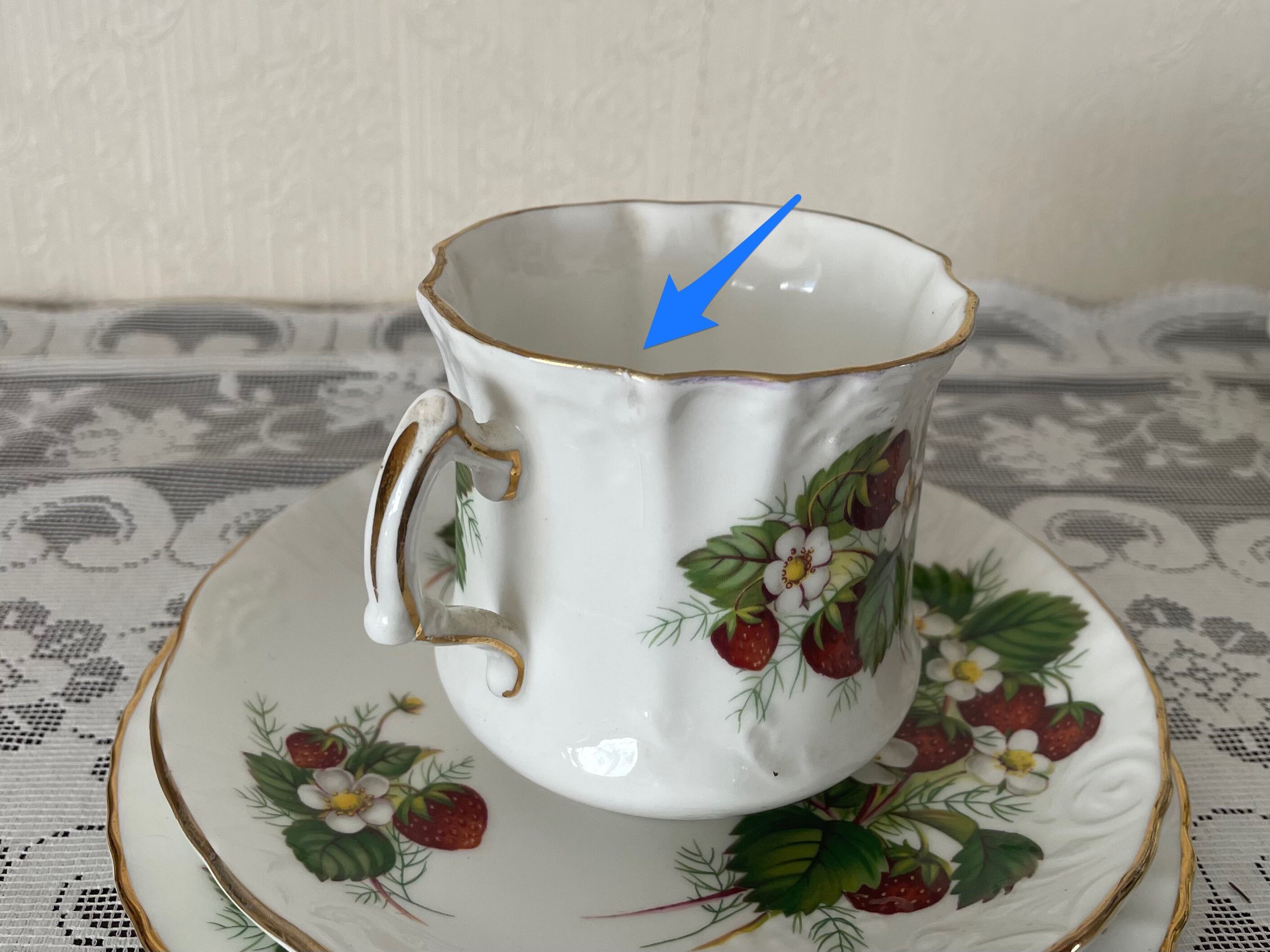ストロベリーの絵柄ははっきりしており、金彩も綺麗でツヤがあります。