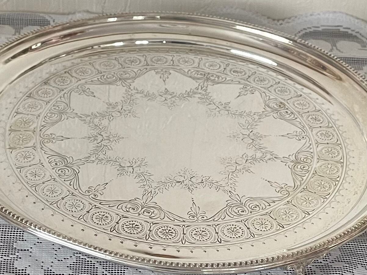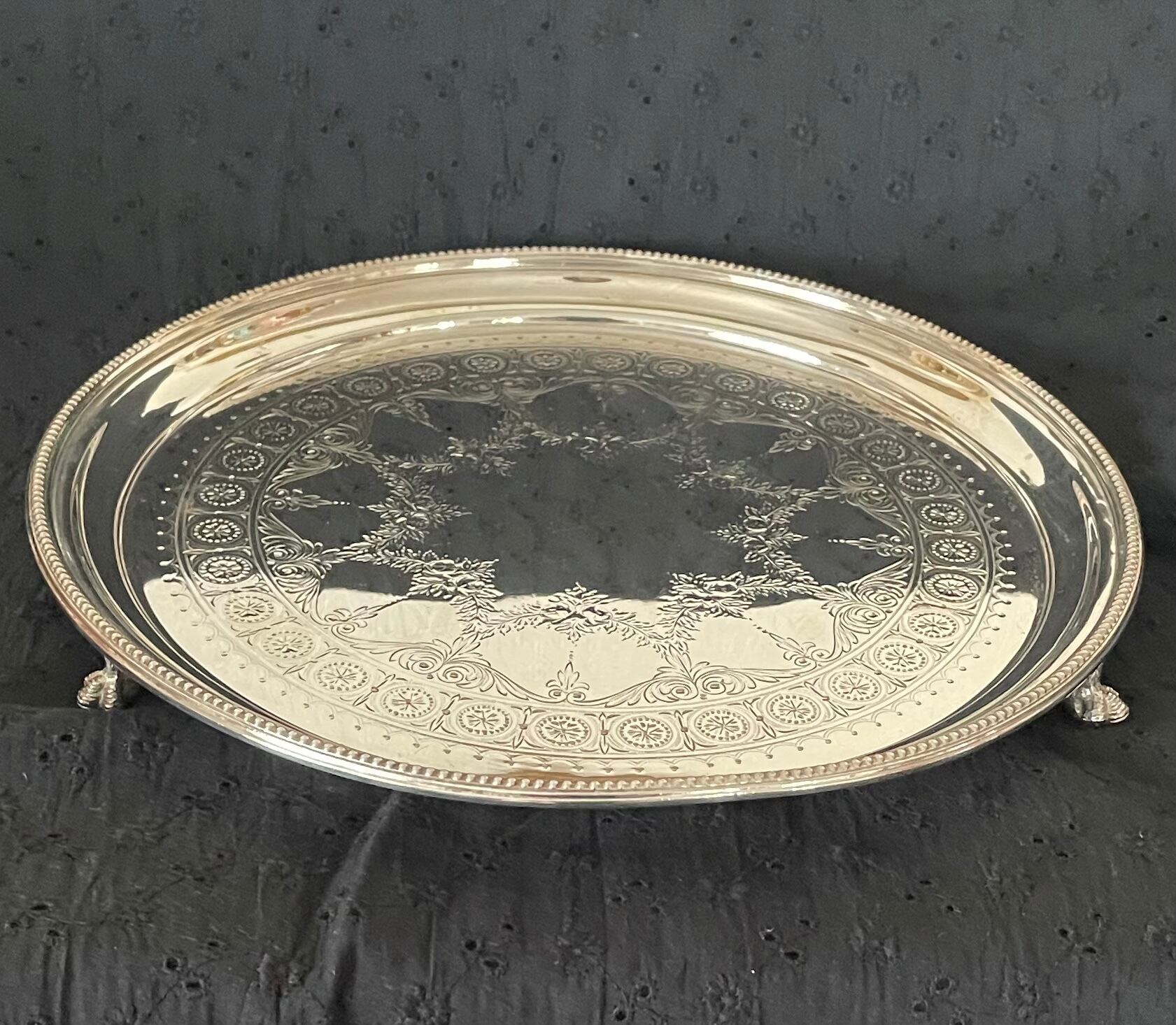エングレーブが美しい円形のシルバープレートのサルバです。