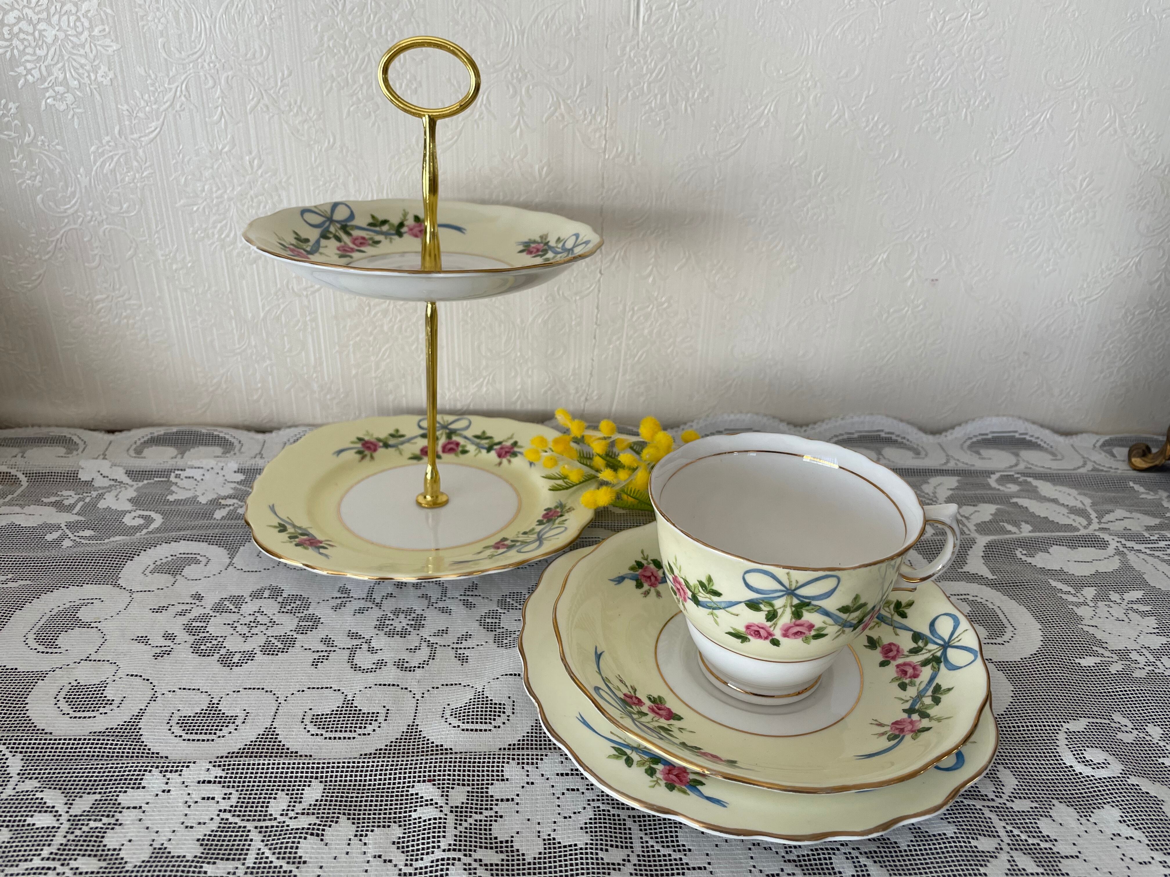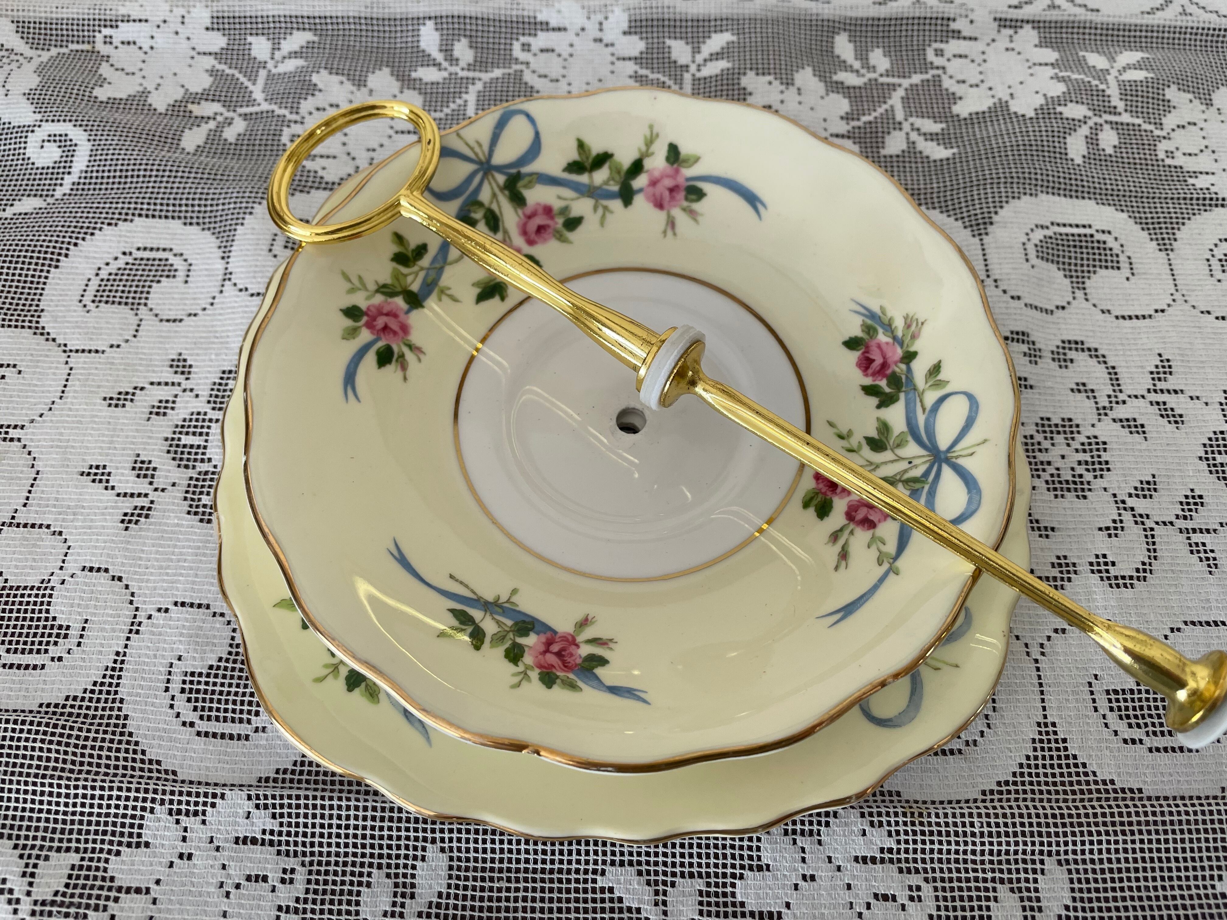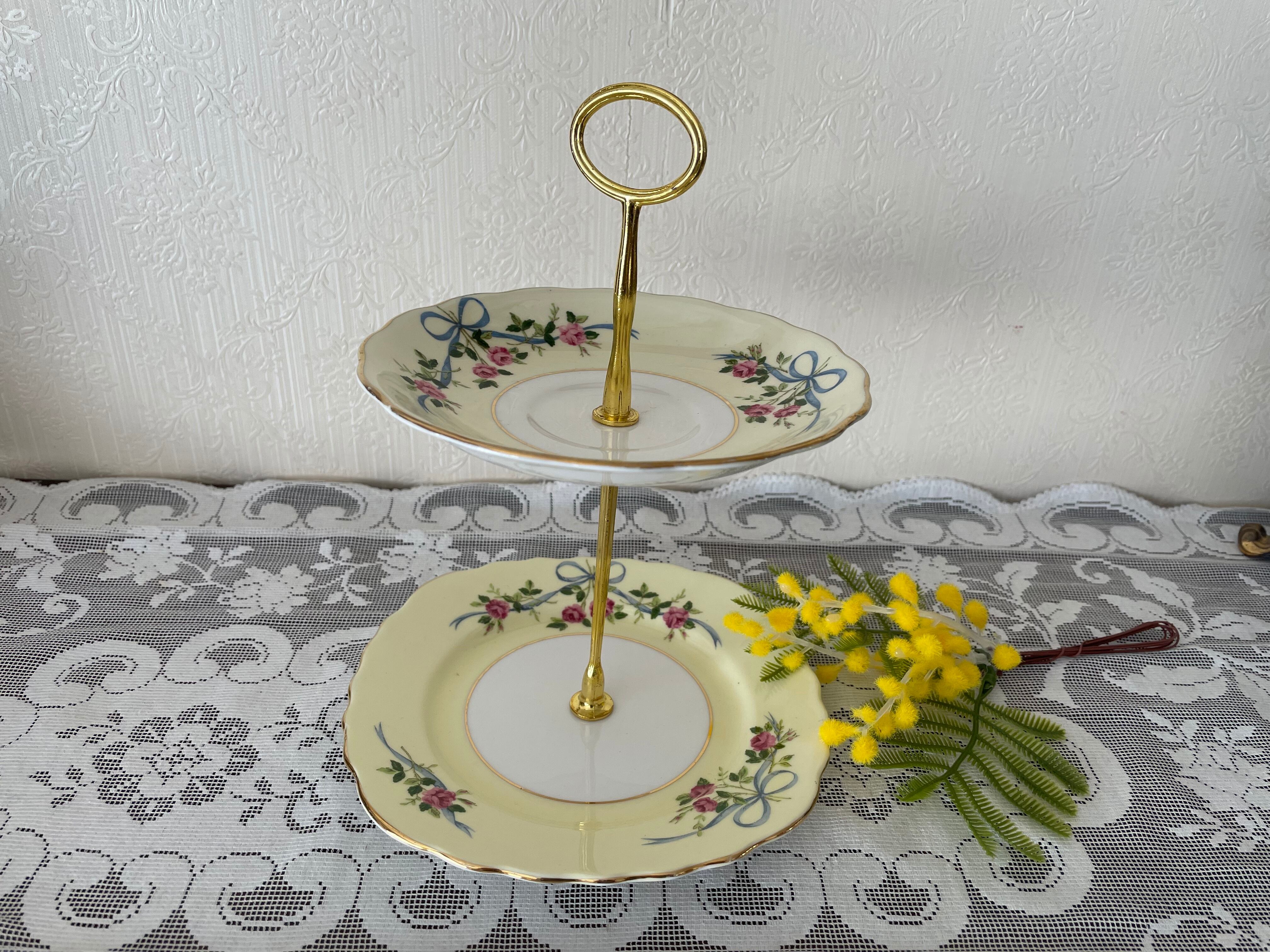 コルクラフのローズ &リボンの2段ケーキスタンド
