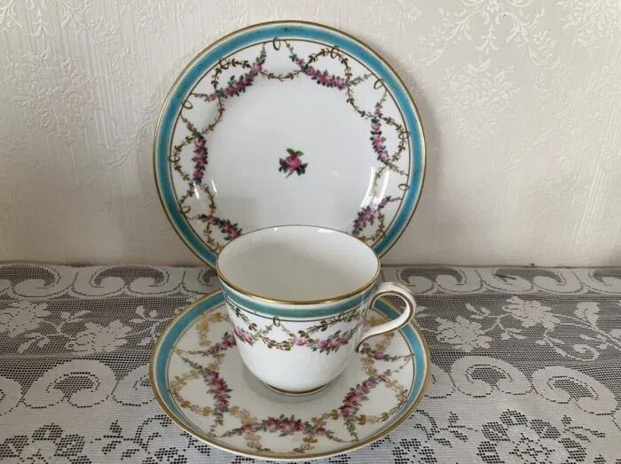 レリーフ(金彩)に薔薇がハンドペイントで描かれています。