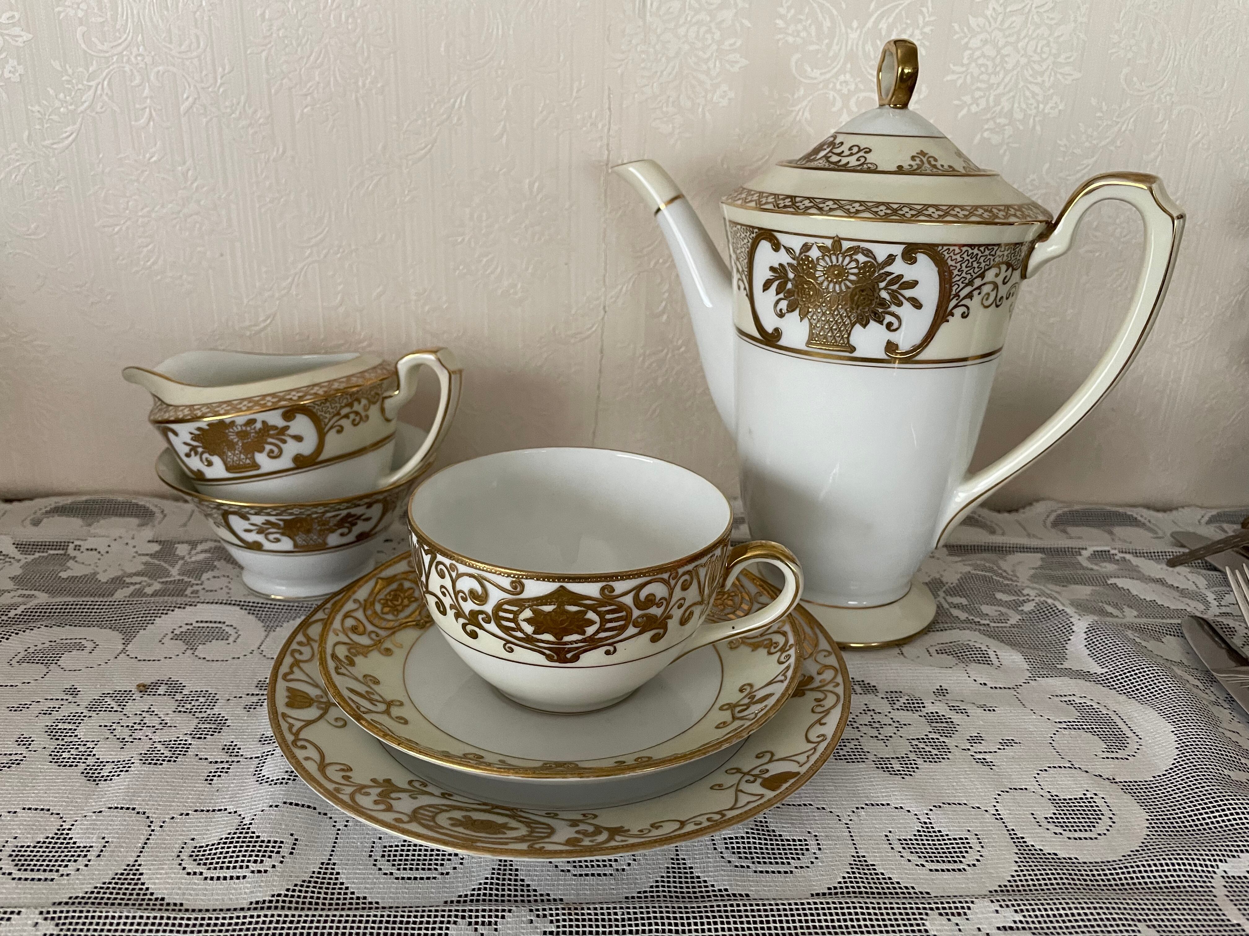 金彩とクリーム色、オールドノリタケならではの繊細な表現と和の風合いが人気のデザインです。