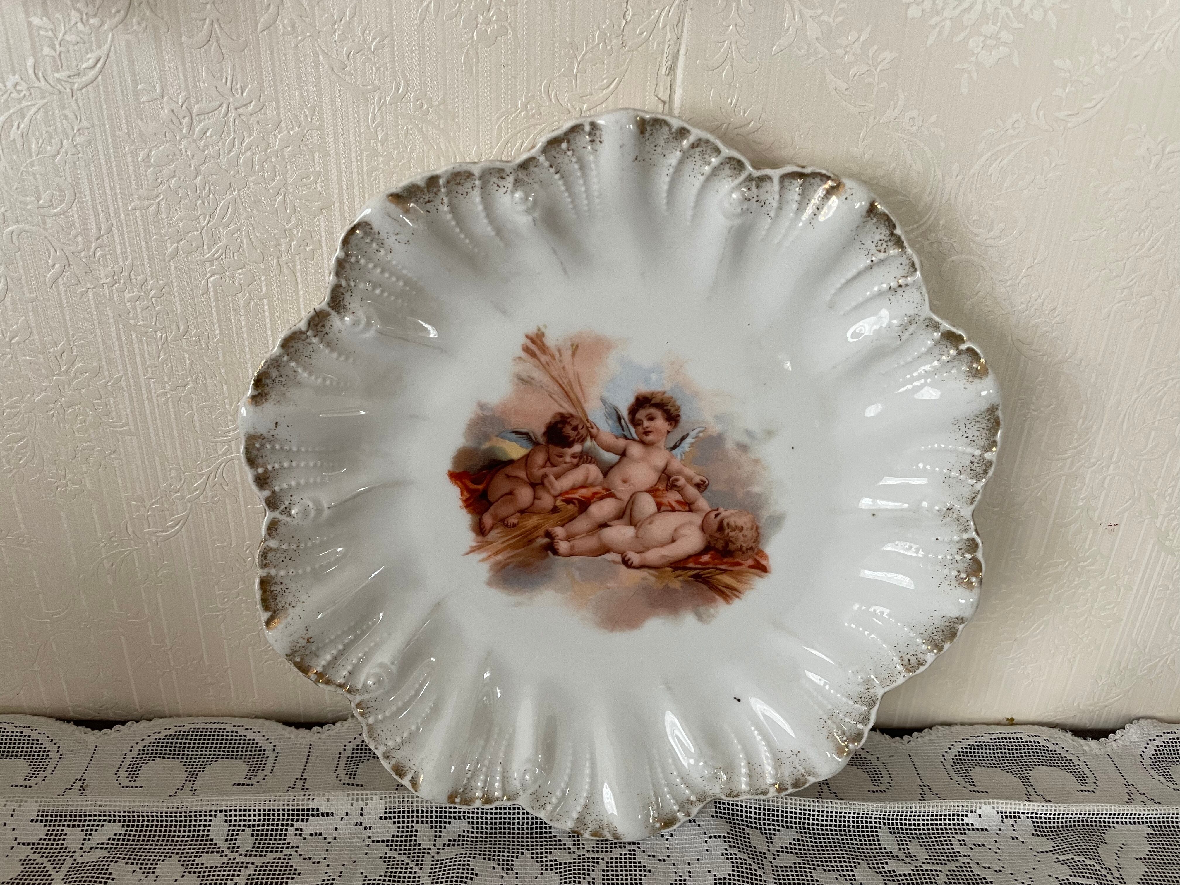 天使が可愛い、ポーセリンのプレート。