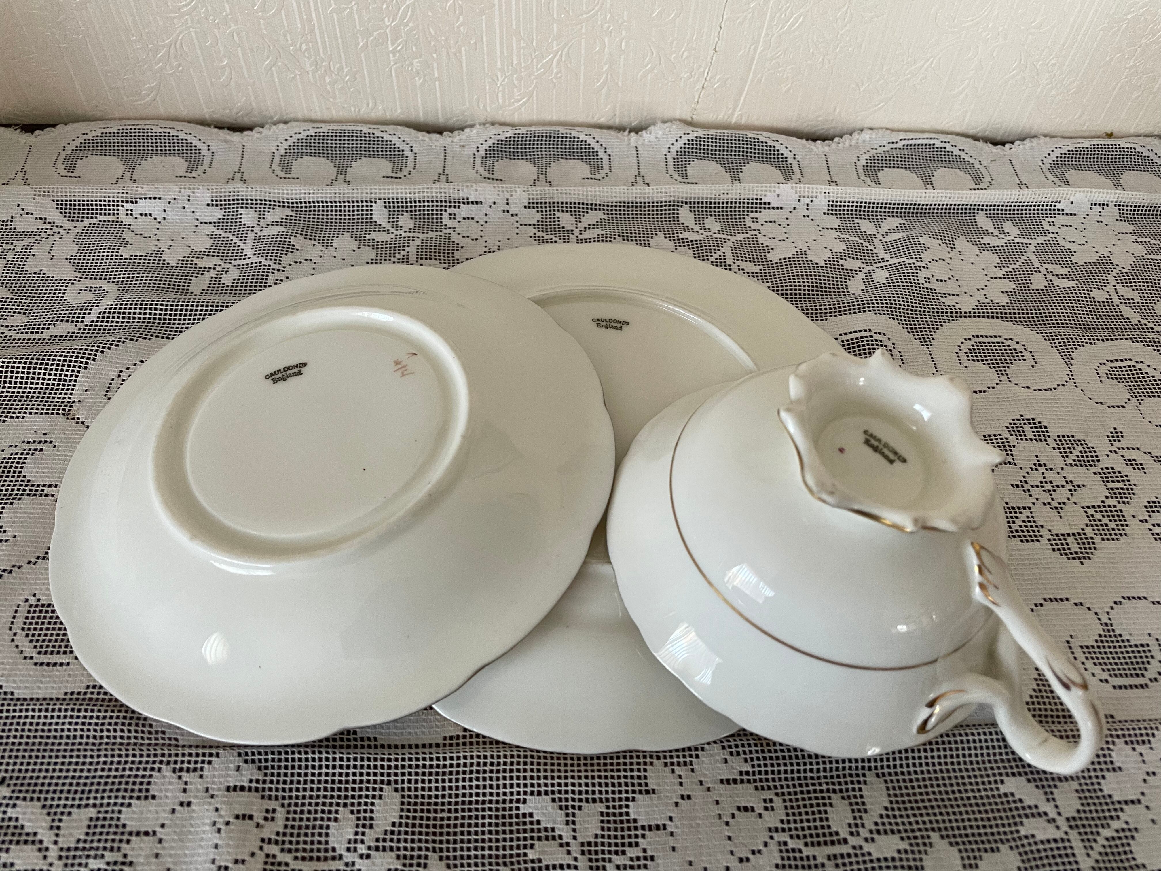 イギリスの有名陶磁器CAULDON(コールドン)のトリオ(カップ、ソーサー、ケーキプレート)