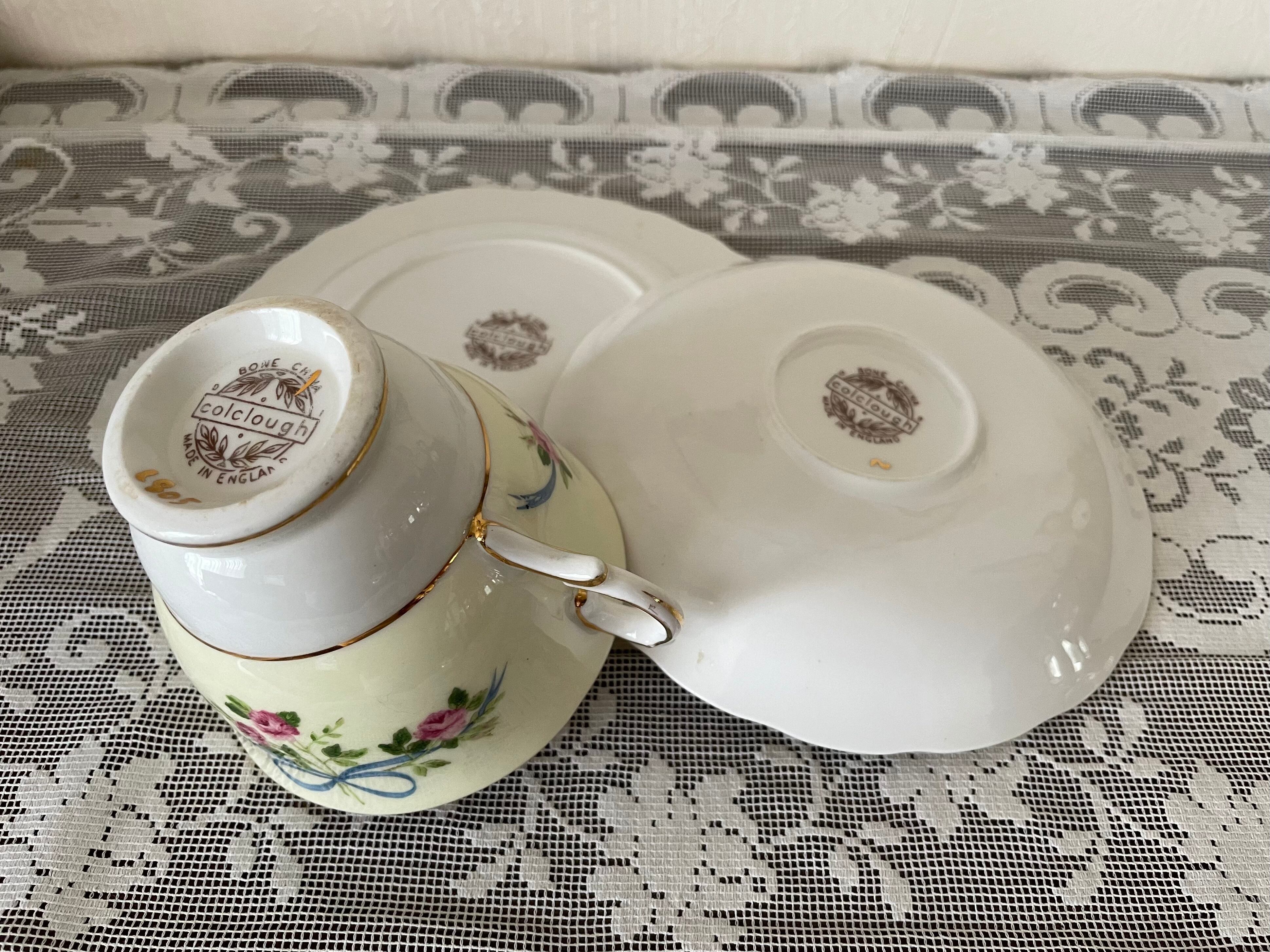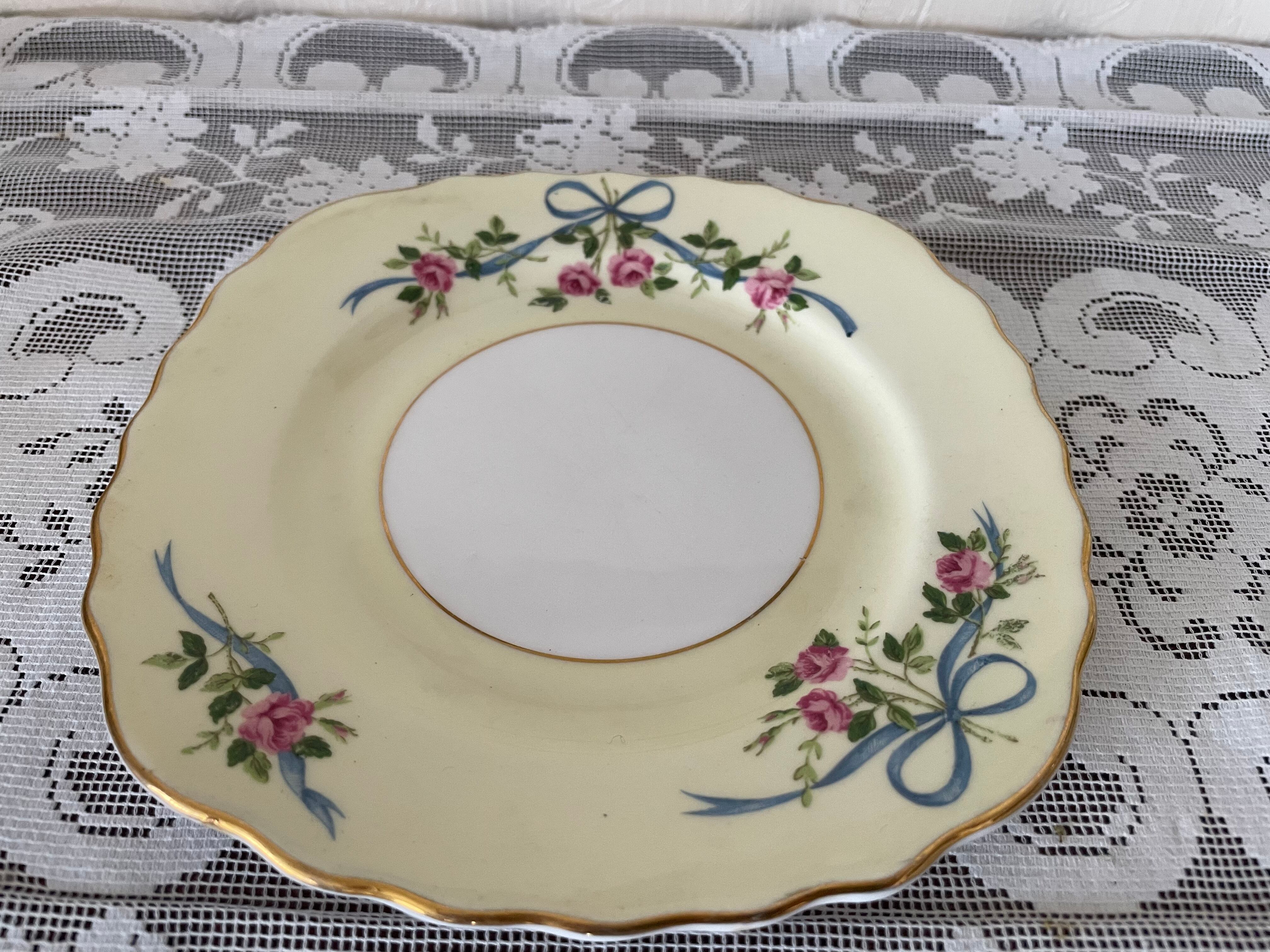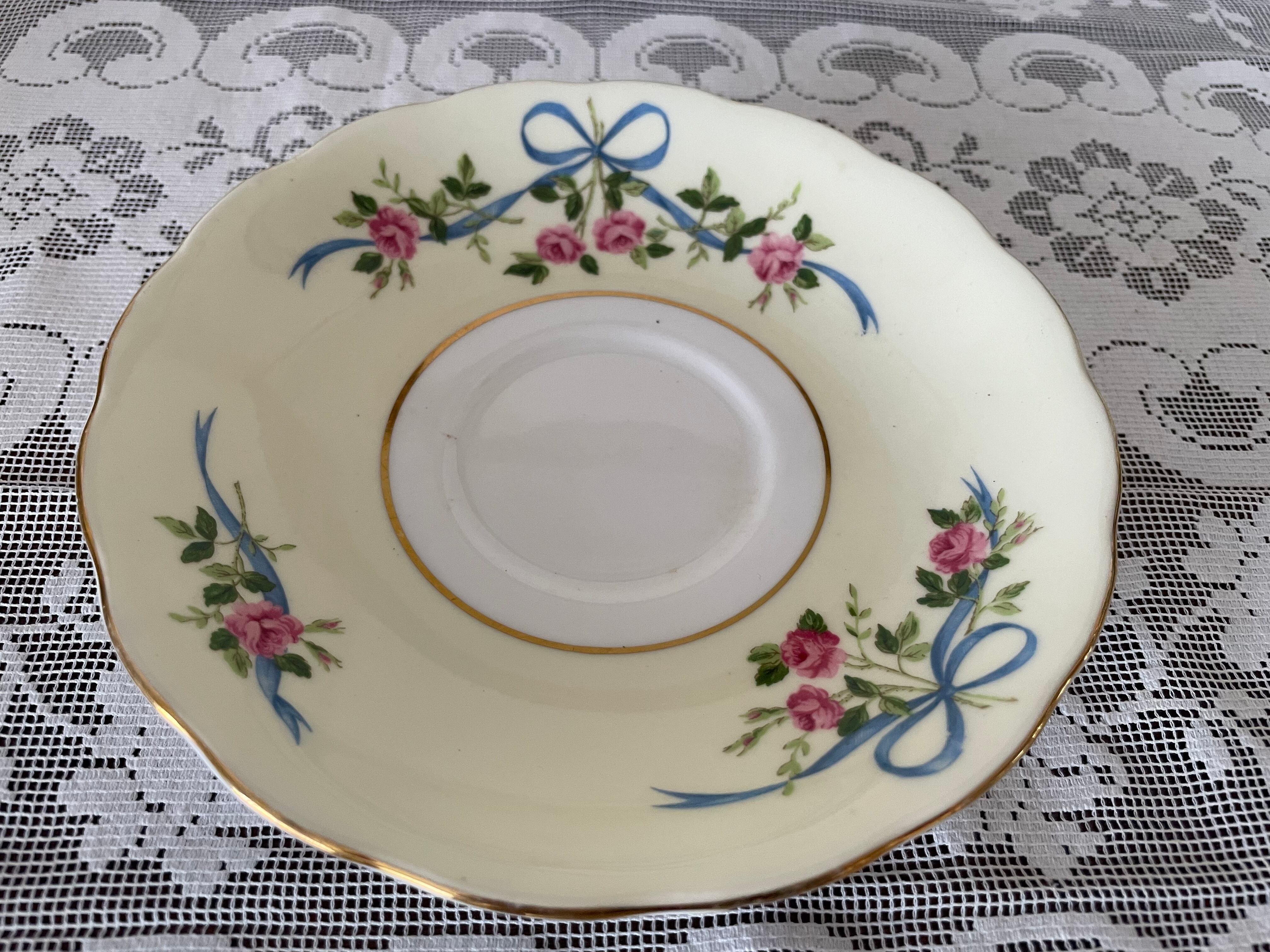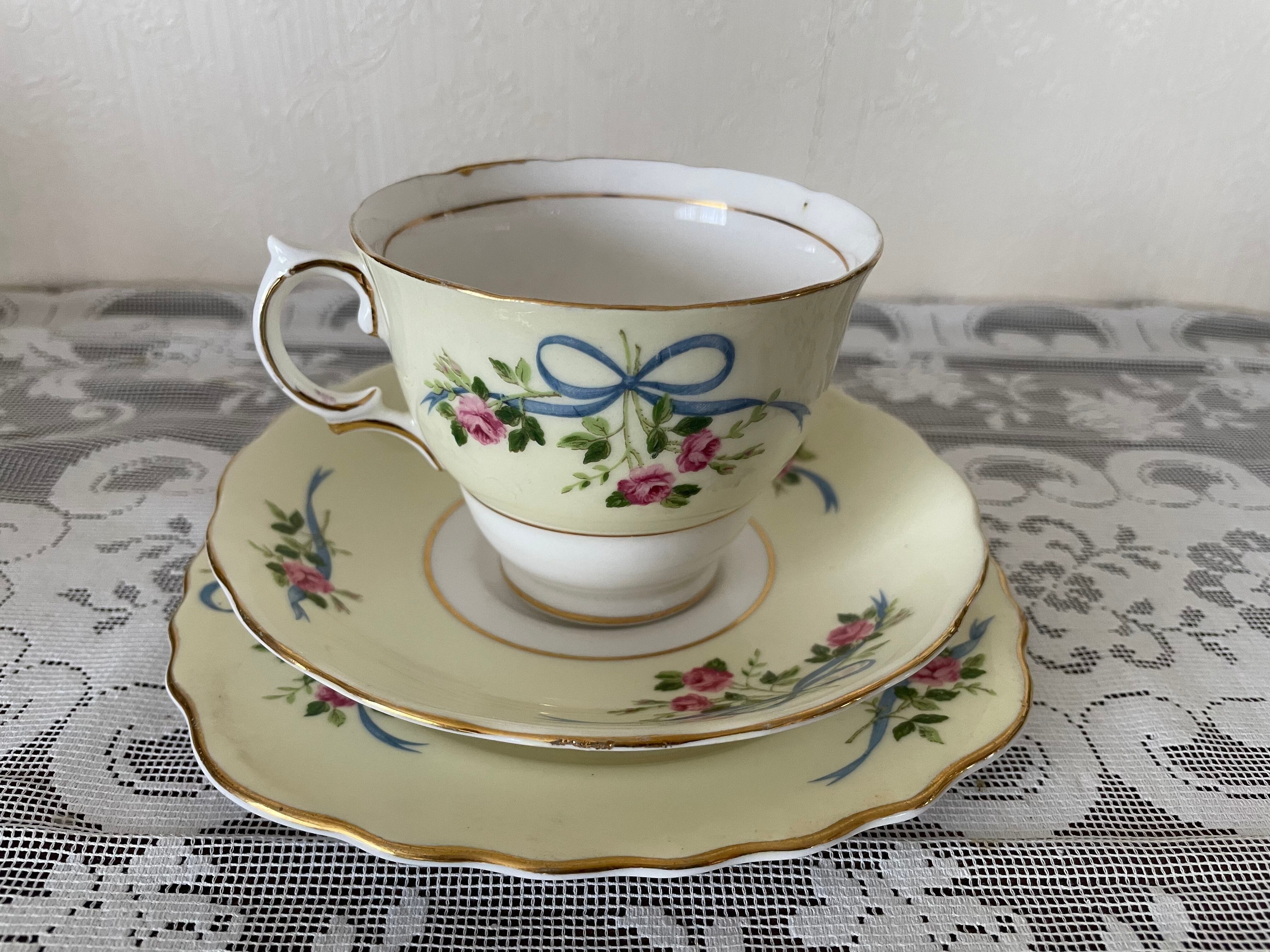 コルクラフのローズ&リボンのトリオ(カップ、ソーサー、ケーキプレート)